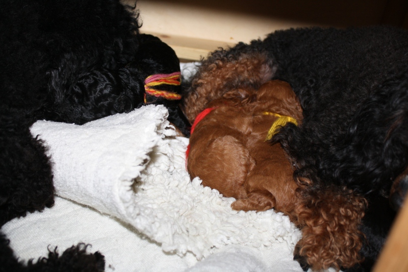 Wir haben eine richtige und eine zweite Mama (Bibi). Beide säugen die Kinder und bewachen abwechselnd die Welpen von Alisha. Bibiana hat sich als zweite Mama angemeldet und wurde voll akzeptiert. Nac