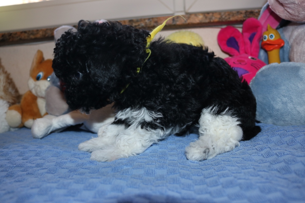 Kessy, Hündin, schwarz/weiss, Gewicht 1.023 g, Gesamtzunahme 877 g, gelbes Band   -   v e r g e b e n   -