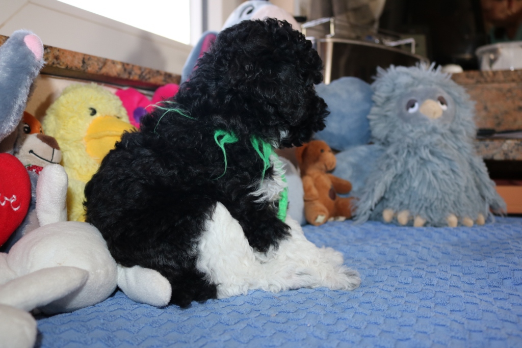 Kitty, Hündin, schwarz/weiss, Gewicht 1.166 g, Gesamtzunahme 1.017 g, grünes Band   -  v e r g e b e n  -