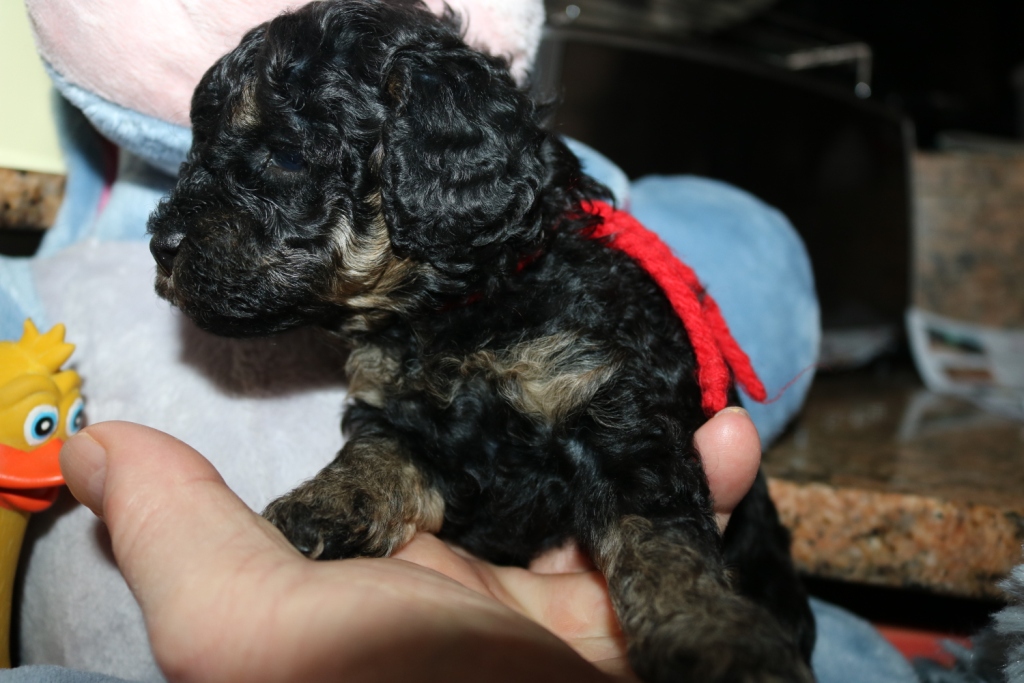 Mandy "Coco", Hündin schwarz/loh, Gewicht 776 g, Gesamtzunahme  610 g, rotes Band  -  v e r g e b e n  -
