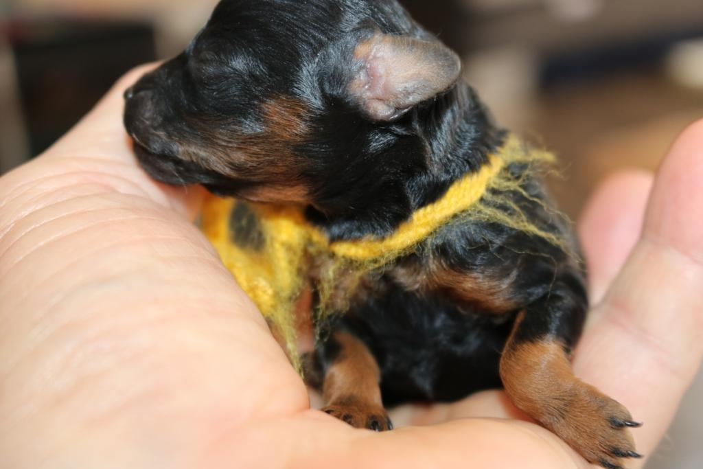 Marie Lou, Hündin schwarz/loh,      Gewicht 111 g, Gesamtzunahme 9 g        -   v e r g e b e n   -