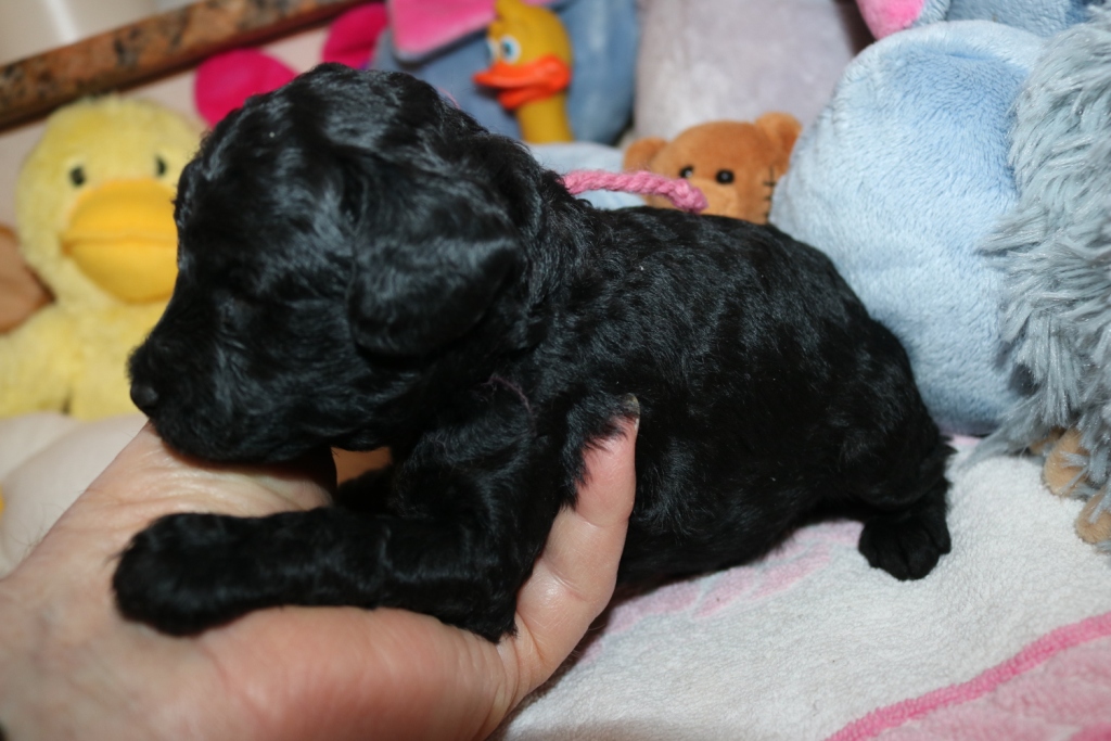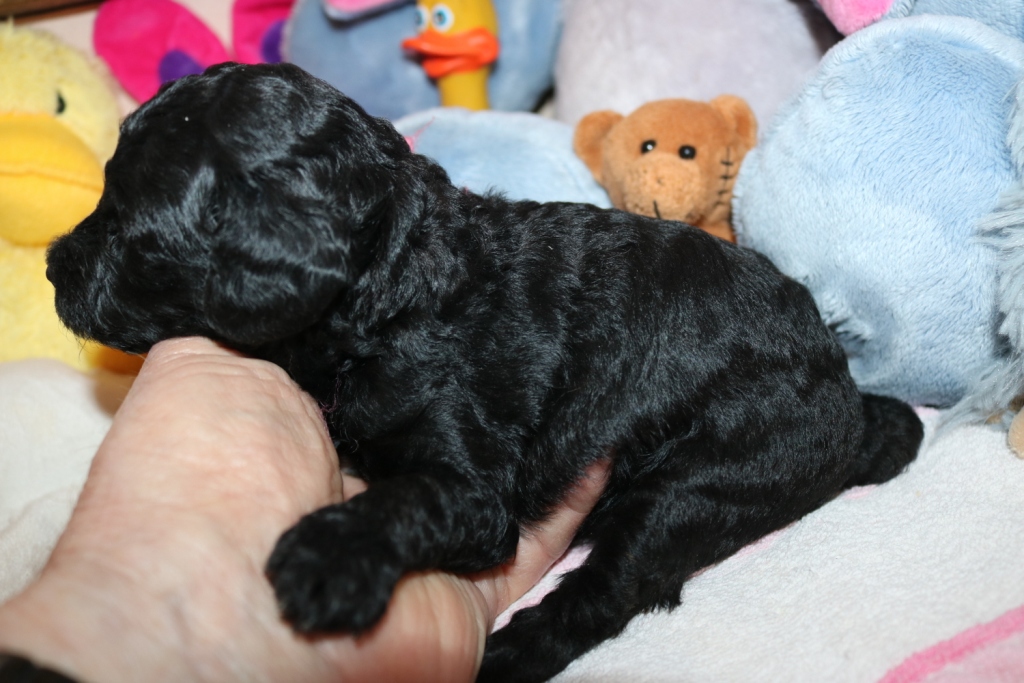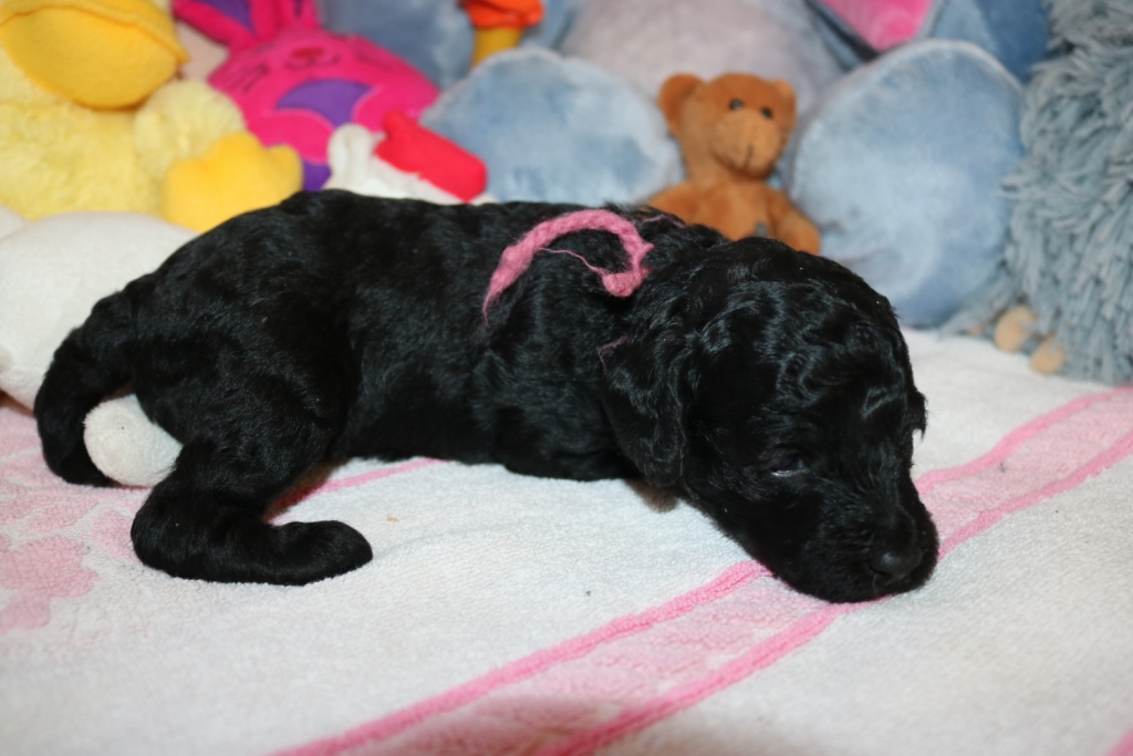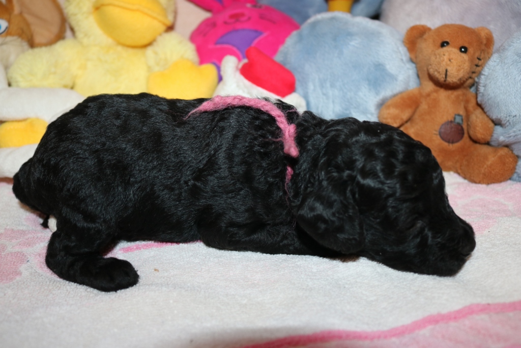 Hanna, Hündin, schwarz, Gewicht 726 g, Gesamt- zunahme 541 g, rosa Band  -  v e r g e b e n   -