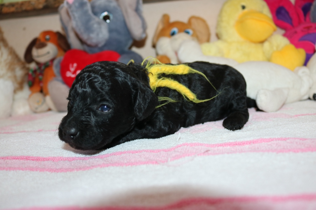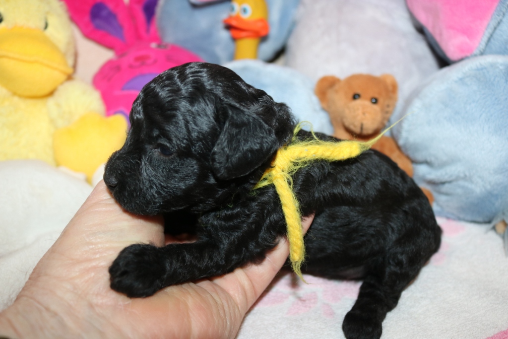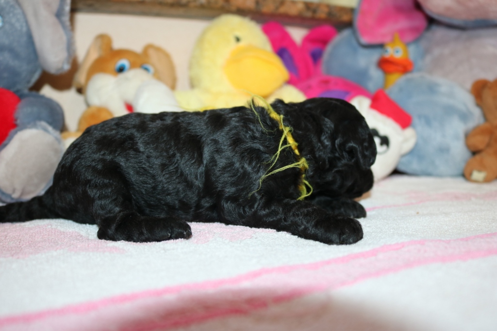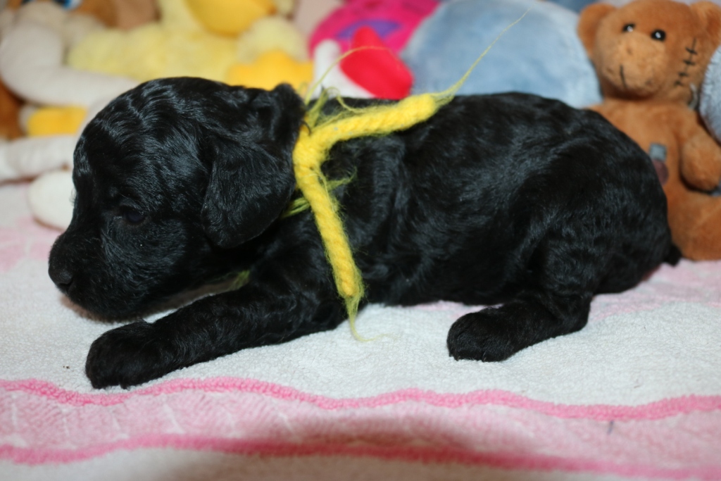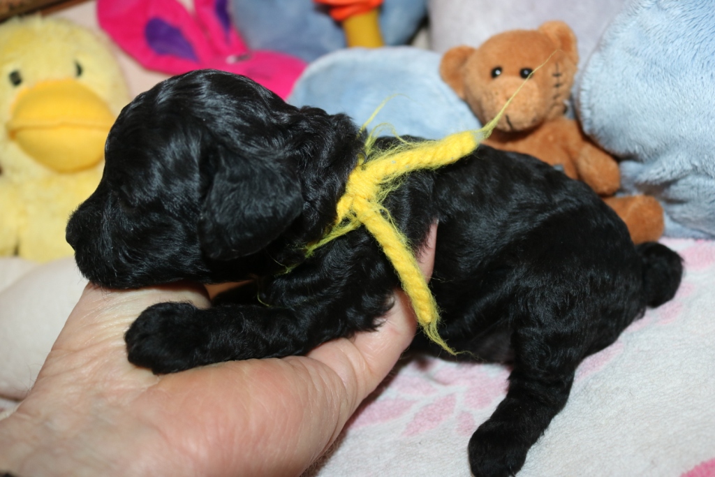 Havanna, Hündin, schwarz, Gewicht 625 g, Gesamtzunahme 473 g, gelbes Band