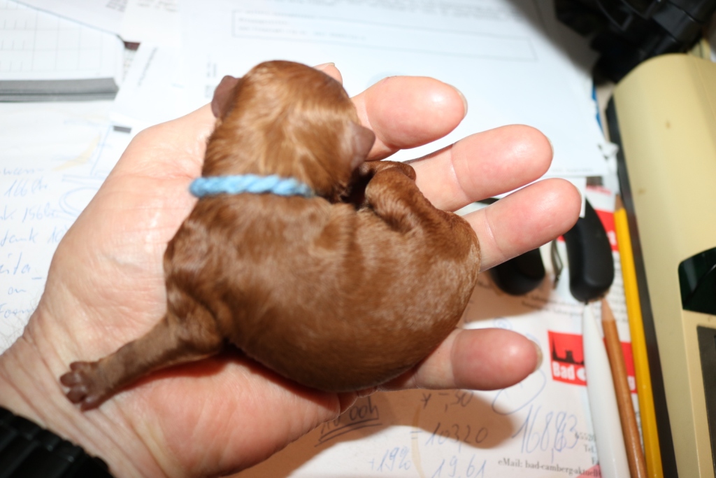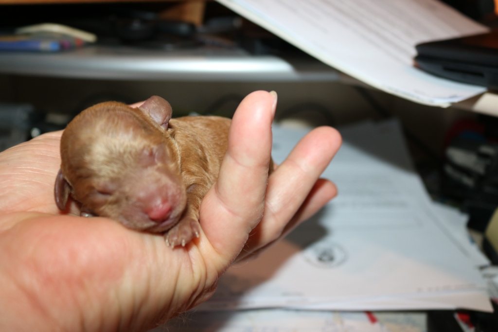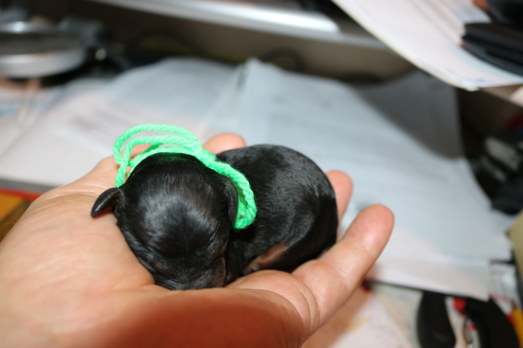 Havany, Hündin, blata, geb. 25.10.2025 um 20:36 Uhr, Geburtsgewicht 164 g, grünes Band  - v e r g e b e n -